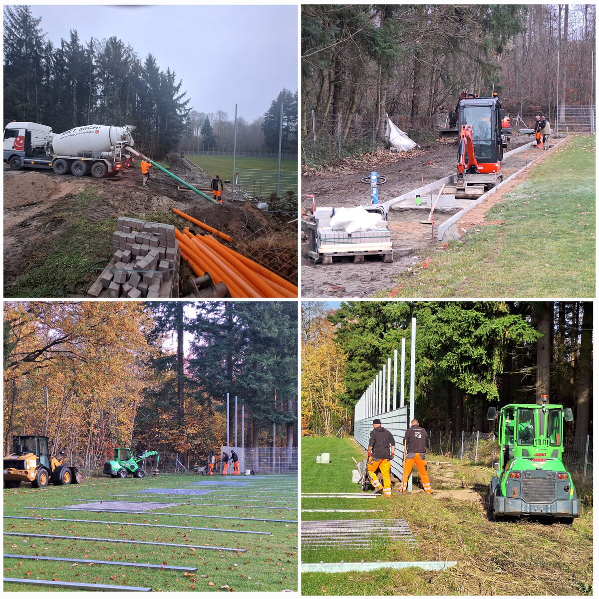 Nach der Herstellung des Kleinfeldplatzes wurden wir durch den Verein MSV Lübstorf mit der Erstellung des Ballfangzaunes sowie der Herstellung der Oberflächenbefestigung mit Zufahrt und gepflastertem Zuschauerbereich beauftragt, die Arbeiten laufen und werden noch vor dem Jahreswechsel fertiggestellt.